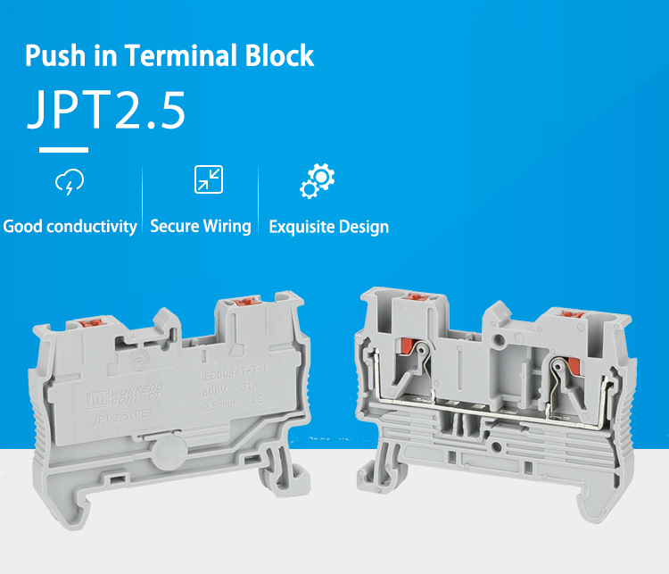 Push-in JPT 2.5 terminal block As a tool-free electrical connection solution, users only need to push the cable to establish a stable circuit. JPT 2.5 terminal block The JPT 2.5 terminal block is made of engineering grade plastic or metal material with high temperature resistance and corrosion resistance to ensure durable and reliable operation in multiple environments.