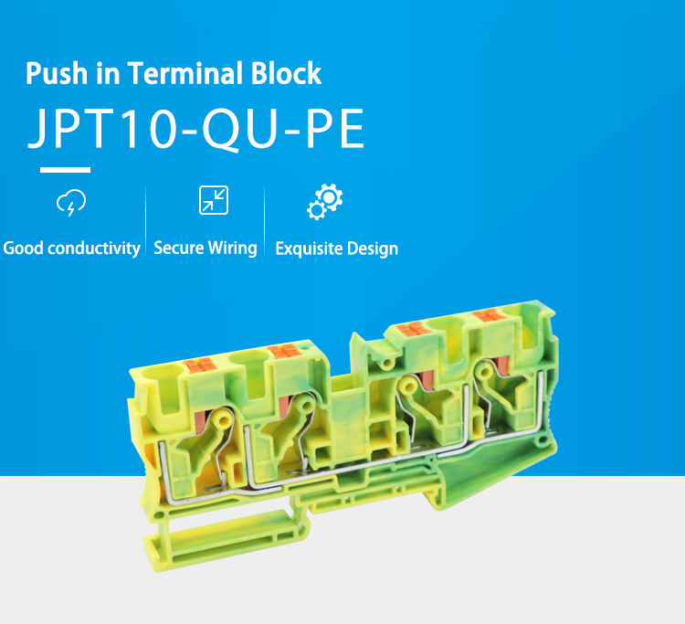 PT10-QU-PE dual incoming line push-in screwless grounding terminal block revolutionizes grounding solution: Dual incoming line design multiplies connection options and synchronously optimizes space; Push in and lock, screw-free installation, highly reliable connection completed in seconds, eliminating the risk of loosening. High-quality materials ensure conductivity and durability, resistance to vibration/high temperature/mechanical stress, and are suitable for compact Spaces. Efficient grounding in multiple scenarios such as industrial equipment, data centers, and building automation, simplified installation, and long-term stability.