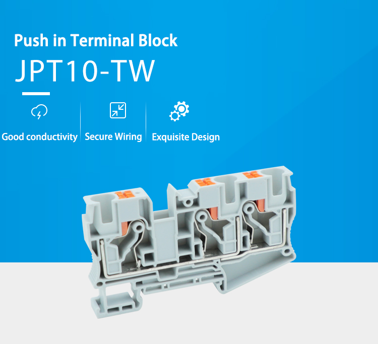 The PT10-TW Ut series push-in screwless multi-conductor terminal block revolutionizes electrical connection. The screwless push-in structure enables quick insertion and simultaneous connection of multiple conductors, simplifying wiring and shortening installation time. High-quality materials are resistant to vibration and mechanical stress, stable and reliable. The compact design is suitable for space-constrained scenarios and is applicable to industrial machinery, control cabinets and electronic equipment, providing an efficient and convenient connection solution for the electrical field.