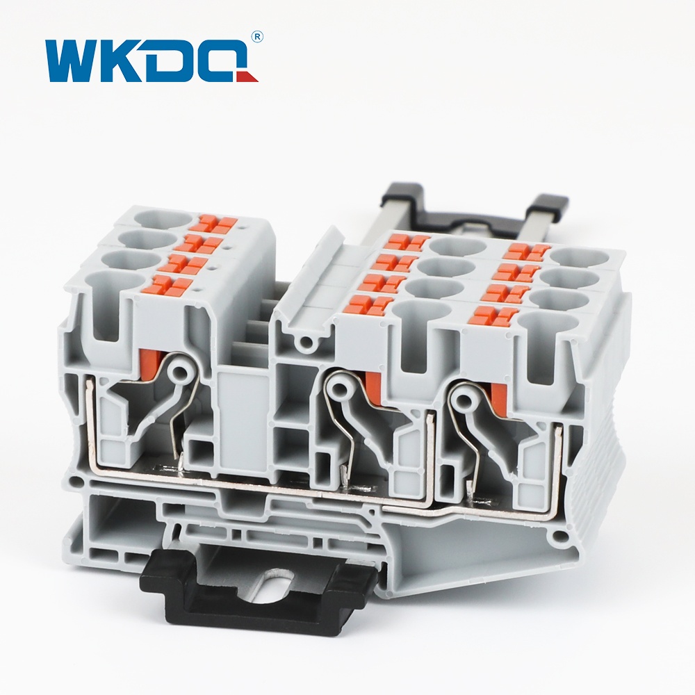 The PT10-TW Ut series push-in screwless multi-conductor terminal block revolutionizes electrical connection. The screwless push-in structure enables quick insertion and simultaneous connection of multiple conductors, simplifying wiring and shortening installation time. High-quality materials are resistant to vibration and mechanical stress, stable and reliable. The compact design is suitable for space-constrained scenarios and is applicable to industrial machinery, control cabinets and electronic equipment, providing an efficient and convenient connection solution for the electrical field.